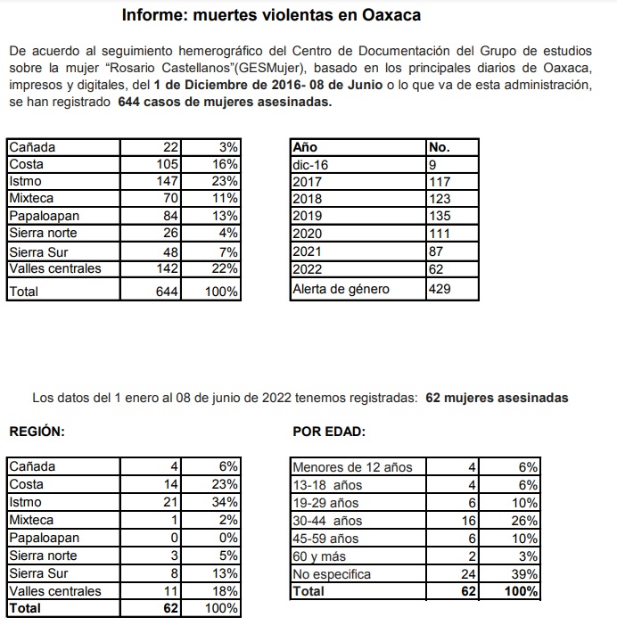 El machismo mata, por ello es urgente la aplicación de la ley, así como avanzar en la erradicación de conductas misóginas y machistas presentes en todos los ámbitos de la esfera social, incluyendo los ámbitos de procuración e impartición de justicia, pues es la grave impunidad la que propicia que no se detenga la situación de violencia feminicida en Oaxaca.