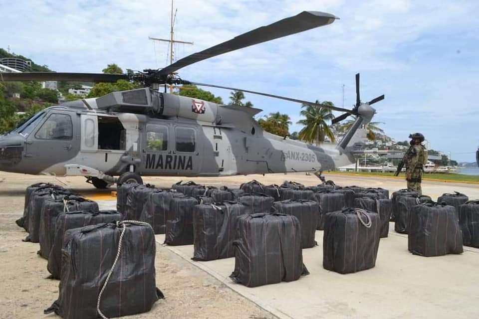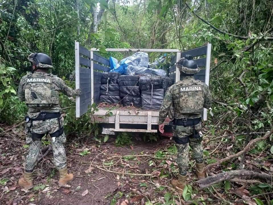 Por lo anterior, personal de la fuerza de reacción de aeronaves de la Armada de México y personal de Infantería de Marina por tierra, aseguró citado vehículo y 36 bultos con un peso aproximado de 1,347 (un mil trescientos cuarenta y siete) kilogramos de presunta cocaína, los cuales fueron puestos a disposición de la Fiscalía General de la República para la integración de la carpeta de investigación correspondiente.