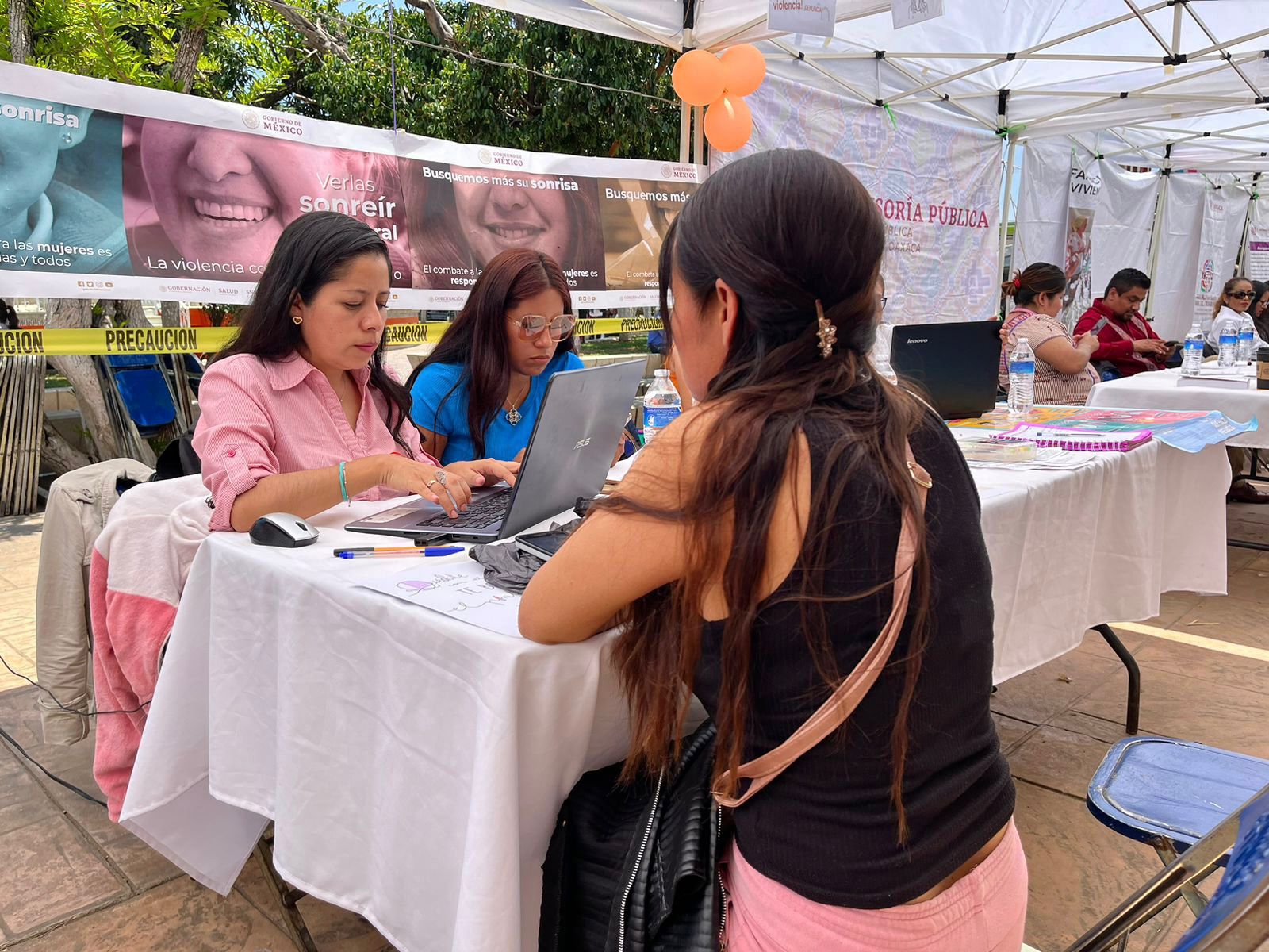 Durante la inauguración de este evento realizado en la Explanada Municipal, la titular del Secretariado Ejecutivo del Sistema Estatal de Seguridad Pública, Karina Barón Ortiz, reconoció el compromiso de la autoridad municipal con las mujeres y señaló que a través de esta jornada se busca brindar un lugar seguro para que ellas puedan pedir ayuda si lo requieren.
