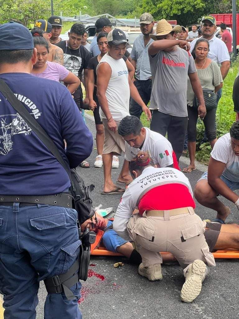 Personal de protección civil de Tututepec brindó atención médica pre hospitalaria al motociclista, el cual debido a las fuertes lesiones que presentaba fue trasladado al IMSS de Santiago Jamiltepec para que recibiera la atención médica correspondiente.