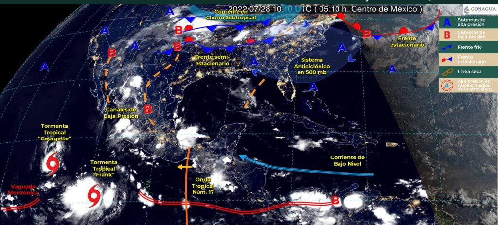 Protección Civil señaló que se continúa con el monitoreo sobre la posible formación de una zona de baja presión frente a las costas de Chiapas, Oaxaca y Guerrero, ahora con 40% de probabilidad para desarrollo ciclónico en cinco días.