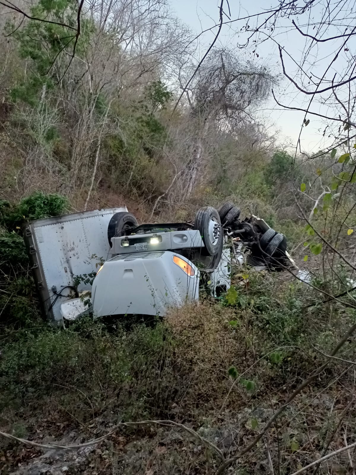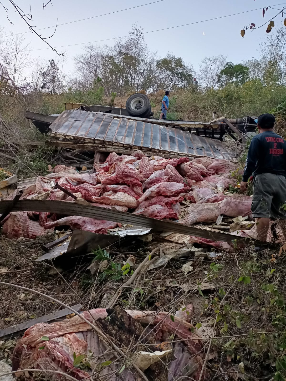 Un chófer de un camión cargado de carné se volcó sobre la carretera federal 200 tramo Huatulco a Salina cruz