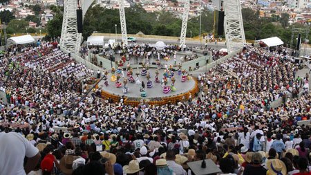 El Cerro del Fortín donde se efectuó por cuarta ocasión esta festividad no pudo lucir más espectacular, pese a la amenaza de lluvia, que en ningún momento mermó el ánimo de un público que gozoso, abarrotó el lugar y que hizo suyo todo el folklor oaxaqueño que mostraron las 47 delegaciones en total y que se hicieron presentes en este escenario.