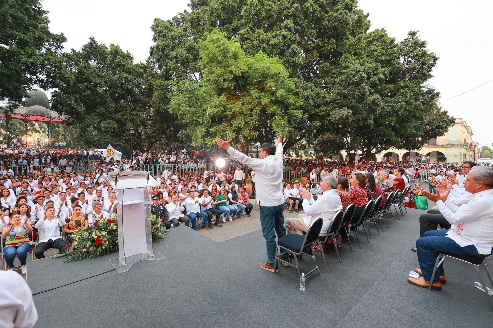 Por primera vez en la historia de Oaxaca, el titular del Poder Ejecutivo rindió su informe desde el Zócalo capitalino, frente al Palacio de Gobierno, el centro político – administrativo del estado que rescató desde el primer día de su mandato y al que le devolvió su resplandor y seguridad para el disfrute de las y los oaxaqueños.