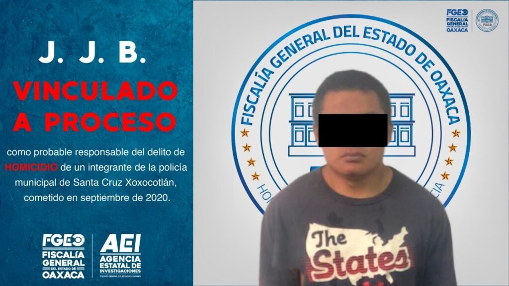 Oaxaca de Juárez, Oax., 27 de septiembre de 2020.- Luego de ser detenido en flagrancia por su probable responsabilidad en el homicidio de A. R. C., quien se desempeñaba como policía municipal de Santa Cruz Xoxocotlán, la Fiscalía General del Estado de Oaxaca logró vinculación a proceso contra el imputado J. J. B., enviado a prisión por el delito de homicidio específico.