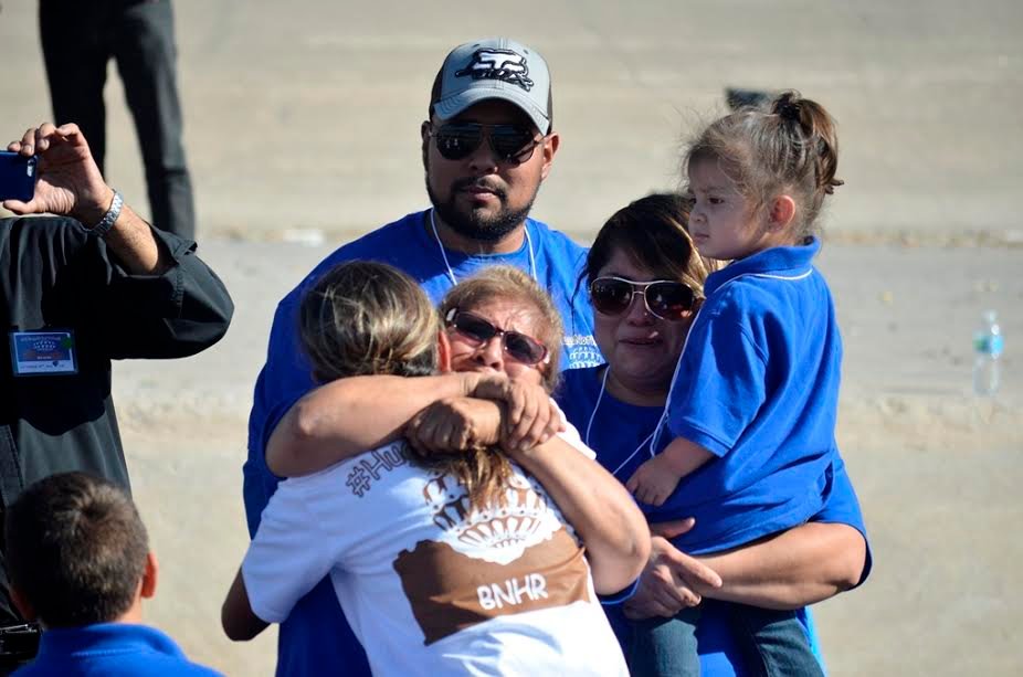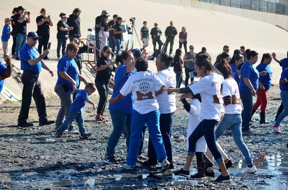 Con permiso de autoridades migratorias, alrededor de 300 familias separadas por años, se reunieron entre los charcos de la linea divisoria internacional para poder abrazarse durante dos minutos.