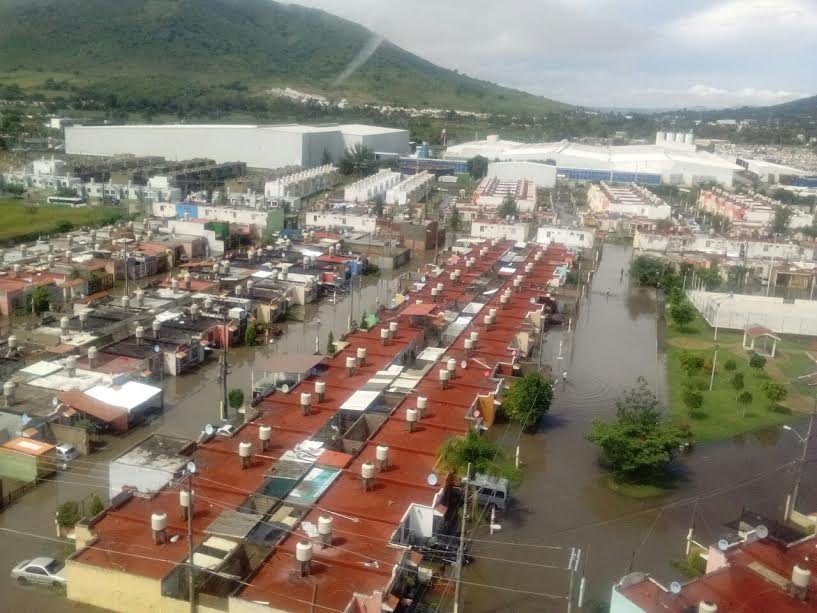 al-menos-200-viviendas-terminaron-inundadas-en-cinco-fraccionamientos-de-la-zona-valles-en-tlajomulco-de-zuniga-jaliscoLos sitios fueron Jardines del Edén, Villas de La Hacienda, Unión del Cuatro, Valle Dorado, San José y Concepción del Valle, donde el nivel del agua alcanzo el metro de altura, dejando daños en el menaje, autos y camiones descompuestos.