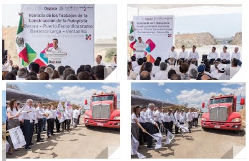 Lo anterior, al dar junto al Secretario de Comunicaciones y Transporte (SCT), Gerardo Ruiz Esparza, el banderazo de reinicio de los trabajos de construcción de la autopista Oaxaca- Puerto Escondido, tramo Barranca Larga – Ventanilla, una obra en la que se destinan recursos por el orden