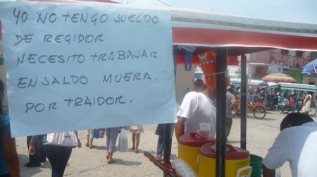 San Pedro Pochutla.- “Los ladrones están en el palacio municipal, soy vendedor ambulante pero honrado”, “Ensaldo Fuera nos discriminas porque somos pobres”, “Yo no tengo sueldo de regidor necesito trabajar porque soy pobre, Ensaldo muera por traidor”, “Fuera ratas del municipio los ambulantes te repudian, fuera policías municipales”, señalaban algunas de las cartulinas en alusión a la política de trabajo que viene implementando el presidente de este lugar.
