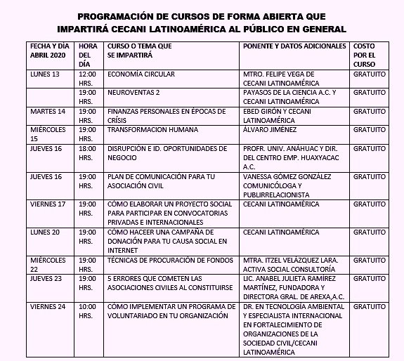– Aprovecha los cursos del 13 al 24 de Abril 2020 con cursos todos los días.