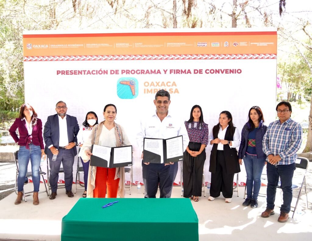 En este marco, se firmaron dos convenios; el primero, con la Universidad de la Sierra Juárez (UNSIJ), a fin de vincular a especialistas e investigadores de la academia para apoyar proyectos productivos de toda la región.
