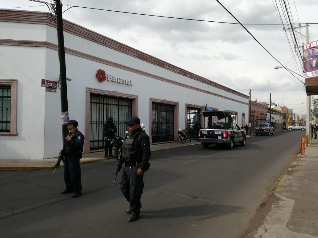ZAMORA, MICH.- Intensa movilización policiaca se registró hace unos momentos, después de registrarse el asalto al banco Banamex, ubicado en la avenida Madero esquina con Profesor Gómez, de la zona centro de esta ciudad.