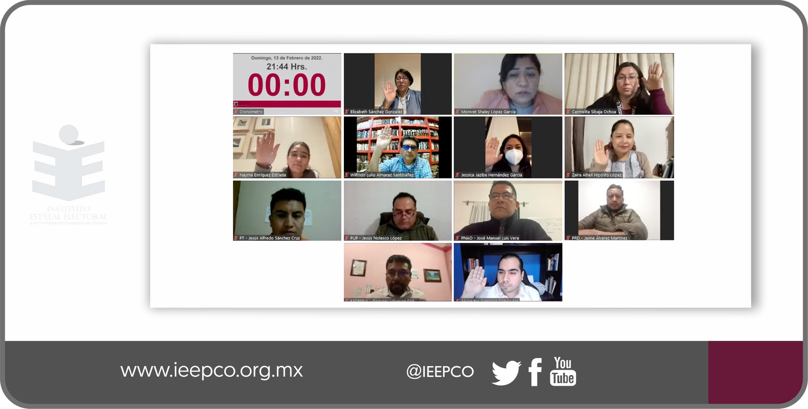 De primera cuenta y por unanimidad de votos, la consejera presidenta, Elizabeth Sánchez González, las consejeras electorales, Carmelita Sibaja Ochoa, Jessica Jazibe Hernández García, Nayma Enríquez Estrada y Zaira Alhelí Hipólito López, así como los consejeros electorales, Alejandro Carrasco Sampedro y Wilfrido Lulio Almaraz Santibáñez, avalaron el acuerdo IEEPCO-CG-31/2022 que incluye la convocatoria a la ciudadanía con interés en postularse a una candidatura por la vía independiente o candidatura independiente indígena y/o afromexicana a concejalías a los Ayuntamientos antes citados, misma que tendrá que traducirse en lengua indígena y braille.