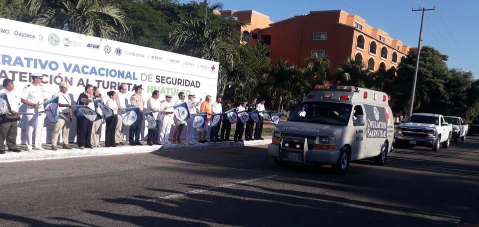 Ciudad de México. – La Secretaría de Marina-Armada de México, como Autoridad Marítima Nacional en funciones de Guardia Costera, informa que el día de hoy personal naval perteneciente al Sector Naval de Huatulco con sus unidades adscritas como lo son el Batallón de Infantería de Marina número 26, el Hospital Naval y la Estación Naval de Búsqueda y Rescate, en coordinación con autoridades de los tres niveles de gobierno, llevò a cabo la presentación y banderazo para el inicio de la Operación “Salvavidas Invierno 2019”. Cabe hacer mención que previo a la integración del contingente se realizó un programa de adiestramiento de salvavidas de playa consistente en fortalecimiento físico acuático e impartición de primeros auxilios con el fin de brindar la mejor ayuda y cuidado a la sociedad en esta temporada vacacional, y que el acto fue realizado en la avenida más transitada de la localidad para dar a conocer el Sistema de Búsqueda y Rescate de la Armada de México, sus funciones y puntos de contacto; así como socializar las actividades de la Armada y realizar aproximación a la ciudadanía.
