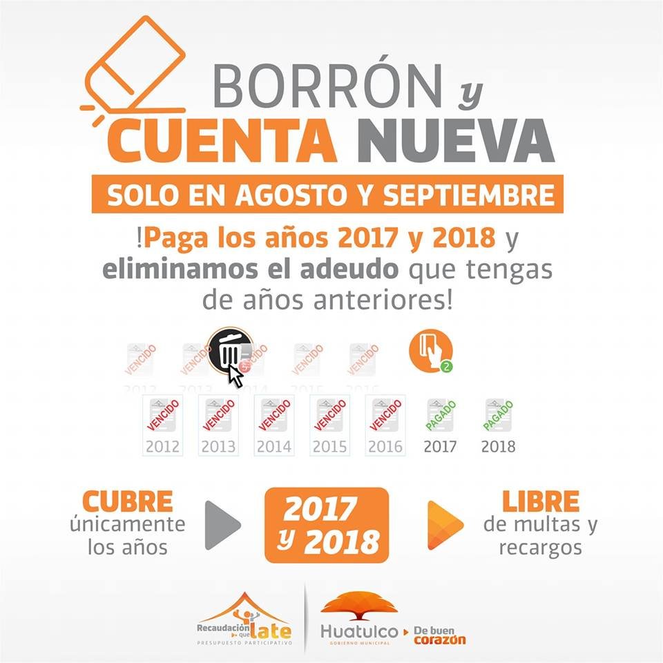 Borrón y cuenta nueva by Panorama | Ago 21, 2018 Borrón y cuenta nueva, paga 2017 y 2018 y eliminamos el adeudo que tengas de años anteriores. print Compartir en WhatsApp Submit a CommentTu dirección de correo electrónico no será publicada. Los campos obligatorios están marcados con *Comentario * Nombre Correo electrónico Web Δ