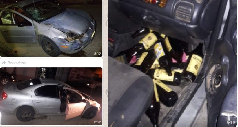 En el interior del vehículo se observan varios embaces de cerveza
