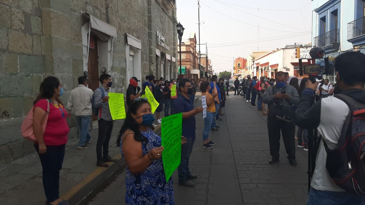 Al salir a la calle y manifestarse piden al.edil de Oaxaca Oswaldo García Jarquín y al Gobernador Alejandro Murat, respeto a las fuentes de trabajo, abrir en horario comercial, cuidando las medidas sanitarias