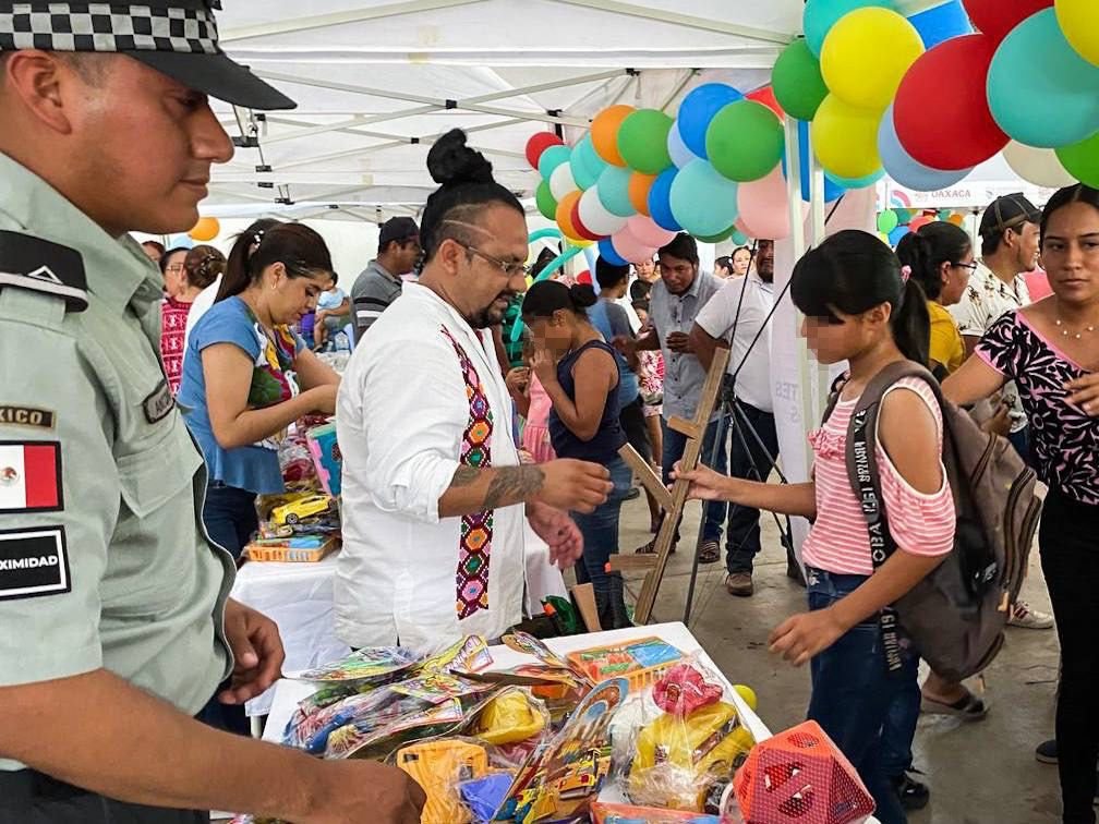 En tanto, como parte de esta estrategia, el pasado 6 de mayo en el municipio de San Miguel Soyaltepec, se beneficiaron a 822 niñas y niños con el canje de juguetes bélicos implementado por la Guardia Nacional, así como con actividades lúdicas.