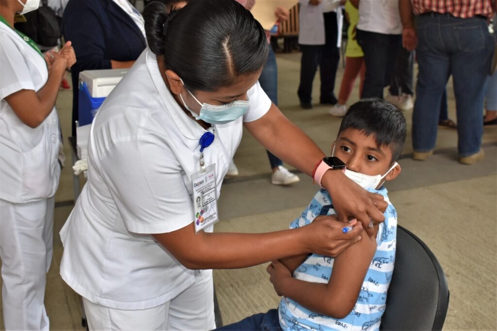 Oaxaca de Juárez, Oax. 05 de julio de 2022.-Con 66 mil dosis de vacunas contra el COVID-19, aplicadas a menores de cinco a 11 años, en esta fase inicial, concluyó de forma exitosa el primer día de la Jornada Intensiva de Inmunización a la población infantil, informó la secretaria de Salud, Virginia Sánchez Ríos.
