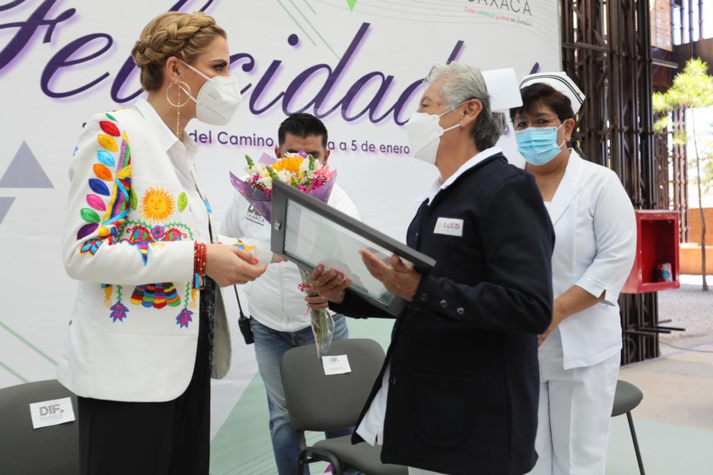 Por otra parte, la Jefa de la unidad de enfermería de los servicios de salud del estado de Oaxaca, Virginia Sánchez Ríos, expresó su agradecimiento a la esposa del gobernador, por la inigualable labor que ha desempeñado en beneficio de todos los sectores de la sociedad oaxaqueña. “Me llena de orgullo saber que usted está al pendiente del quehacer de las y los enfermeros, y principalmente, que haya decidido reconocer la naturaleza humanística y científica que caracteriza a esta profesión de enfermería, esencialmente en estos tiempos de pandemia. Es un honor para cada uno de nosotros, poder trabajar a su lado”, expresó Sánchez Ríos.