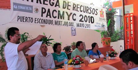 Puerto Escondido Oax.-  Este viernes, en una concurrida reunión, los integrantes del  Programa de Apoyo a las Culturas Municipales y Comunitarias (PARMYC)  Órgano  de selección a proyectos viables, entregó recursos superiores a los ochocientos mil pesos a veinte propuestas.