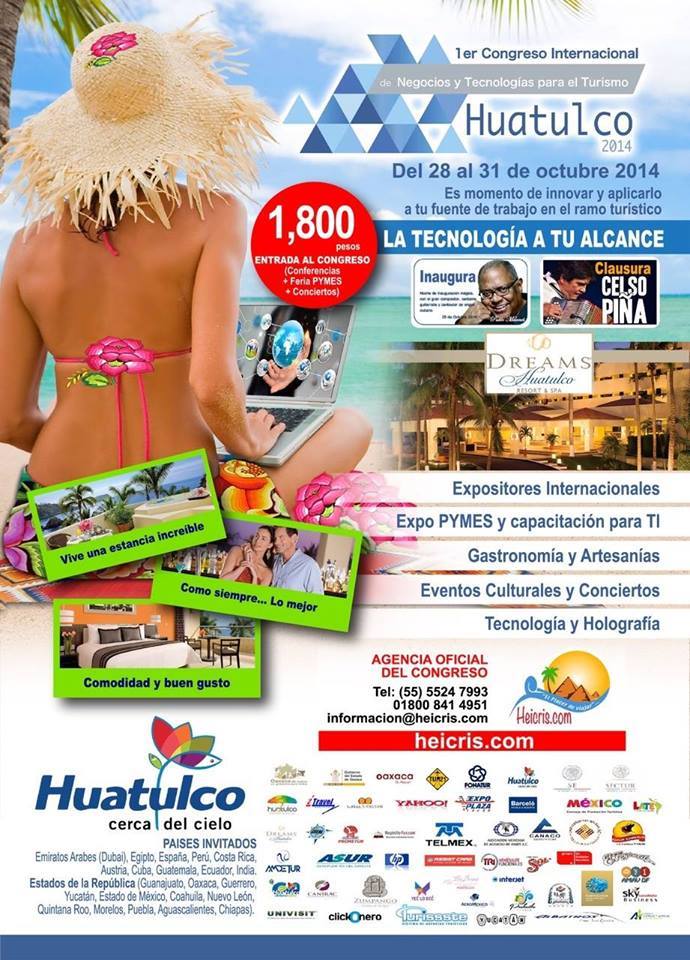 México, D.F.- El Gobierno del Estado de Oaxaca a través de la Secretaría de Turismo y Desarrollo Económico (STyDE) y la Oficina de Convenciones y Visitantes (OCV) en coordinación con el Municipio de Santa María Huatulco invitan al 1er. Congreso Internacional de Negocios y Tecnología para el Turismo Huatulco 2014 que se llevará a cabo del 28 al 31 de octubre del presente año.