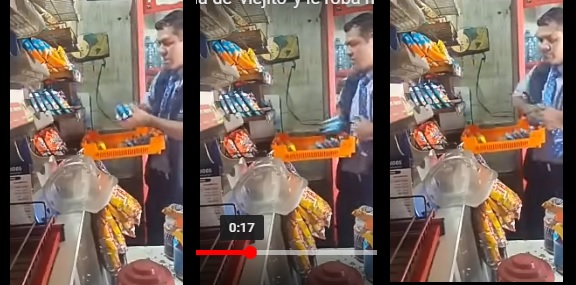 En el video, se observa al trabajador acomodando los productos y en un descuido del dependiente se roba tres “Chocoroles” que recién acababa de colocar. Además, hace creer al hombre que le está haciendo un descuento en su cuenta debido a que le dice “es cliente distinguido”.