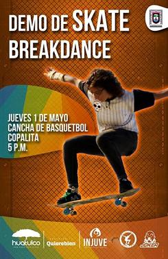 Te invitamos a la Demo de Breakdance y Skate en la cancha de basquetbol de Copalita a las 5 de la tarde, este jueves primero de mayo.