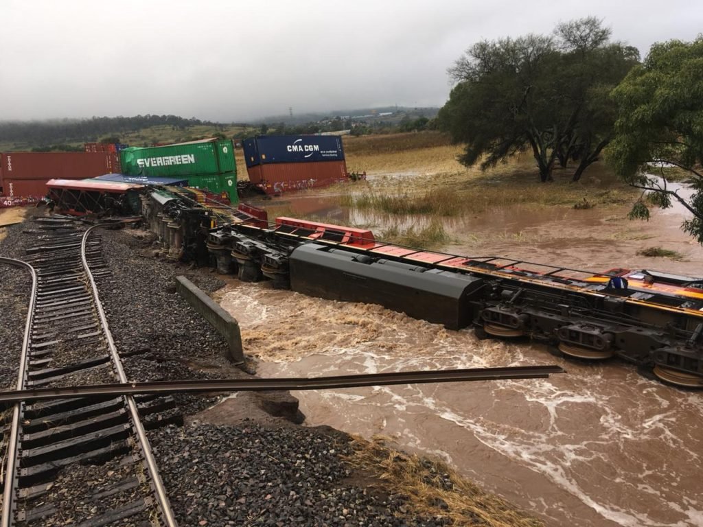 Charo, Mich.- Lunes 22 de octubre de 2018.- A consecuencia del temporal que generó el huracán “Willa”, el cual reblandeció la tierra, el tren de la compañía Kansas City Southern descarriló en la población de La Goleta, situada en este municipio, al menos dos trabajadores de la empresa en mención quedaron heridos, de acuerdo con la información brindada contactos oficiales.
