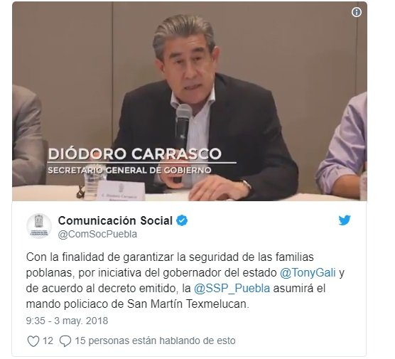 La víspera, el gobierno de Puebla asumió el mando de la Policía Municipal en esa localidad y trasladó a 185 elementos de seguridad local al Centro Único de Evaluación y Control de Confianza, a fin de ser examinados.