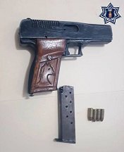 Al interceptar el mototaxi los uniformados aseguraron a dos menores de edad, percatándose además que en el asiento se encontraba un arma de fuego calibre 9 mm, con cuatro cartuchos útiles.