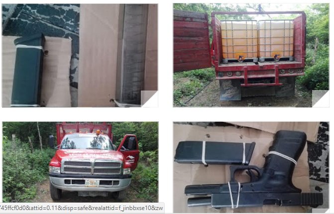 En el lugar, aproximadamente a 50 metros del camino, policías estatales observaron una camioneta de redila, color roja, marca RAM F-250, la cual tenía las puertas traseras abiertas, siendo que a un costado se encontraban tambos de 200 litros y contenedores con capacidad de mil litros, por lo que procedieron a acercarse al lugar para verificar el contenido de los mismos.