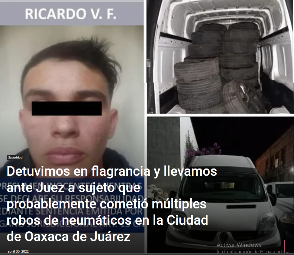 De acuerdo a la carpeta de investigación 14670/FVCE/OAXACA/2022, en diferentes fechas, el imputado probablemente cometió una serie de robos de neumáticos a vehículos de diversas personas, esto en inmediaciones del Infonavit Primero de Mayo, colonia El Arenal y la Agencia de San Felipe del Agua, por mencionar algunos, en la capital oaxaqueña.