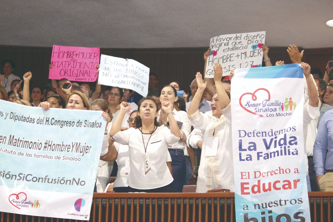 “¡Sinaloa sin homofobia!”, “¡Estado laico, Estado laico!” ¡Otra familia, otra familia! ¡Constitución, no religión!”, enarbolaban activistas en pro de la diversidad.
