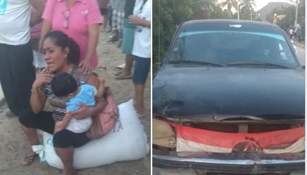 Sabas fue el más lesionado, de acuerdo a testigos oculares el impacto contra el asfaltó le desfiguró el rostro, su bebé de escasos 9 meses, también voló por los aires tras salirse de las manos de su madre con el fuerte golpe del vehículo, misma que también cayó varios metros adelante.