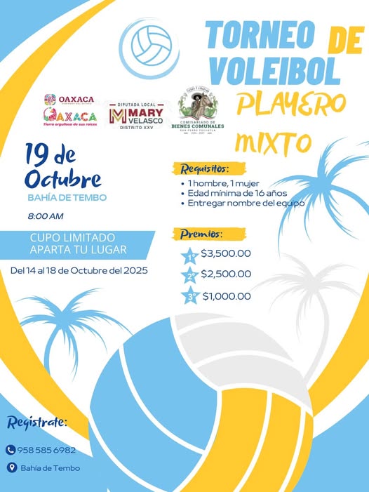 Te invita a participar al voleibol playero Mixto en la BAHÍA DE TEMBO