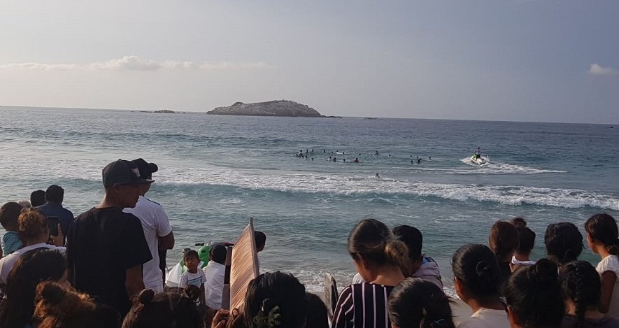 Salvavidas, surfers población en General y Elementos de Protección Civil de Tututepec rinden un homenaje al salvavidas en la playa de Cacalote.