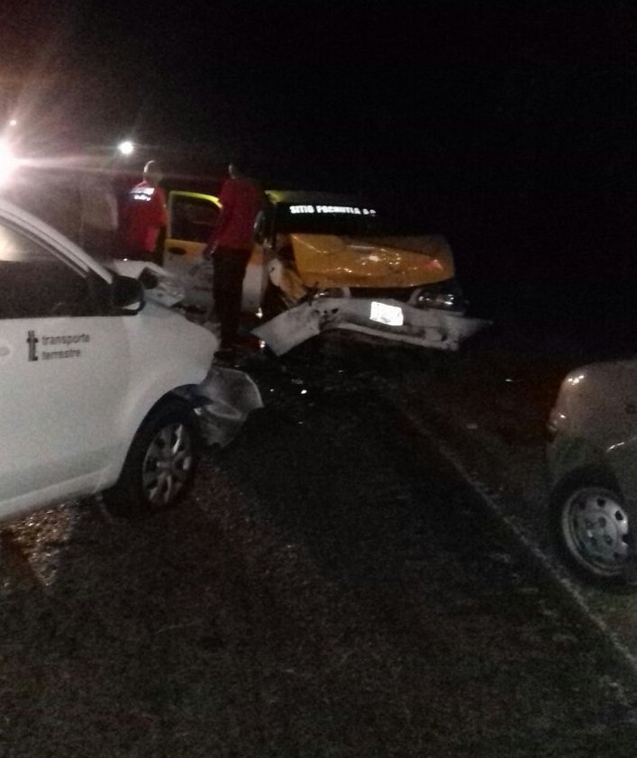 San Pedro Pochutla.-Siendo las 2:20 am el cuerpo de bomberos Pochutleco recibió la alerta de un choque frontal a la altura del paraje los ciruelos sobre carretera federal 200 tramo Pochutla – Huatulco, 4 elementos abordo de la A-03 se traslada, al lugar 3 personas lesionadas , dos de ellas mayores de edad y un niño de un año se trasladan al hospital de san Pedro Pochutla para su atención.