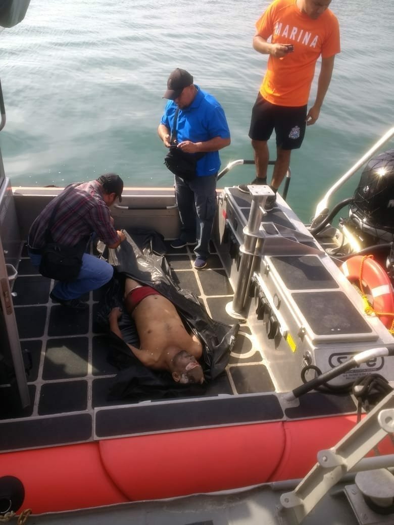 Esta mañana personal de la SEMAR abordo de una lancha interceptora, recuperó el cuerpo que flotaba en el mar y lo trasladó al muelle de la institución, donde fue entregado a las autoridades ministeriales, quienes posteriormente, tras ser identificado, lo entregaran a sus familiares.
