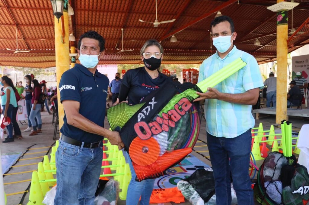 Santo Domingo Tehuantepec, Oax. 27 de febrero de 2021.- Con una inversión superior a los 300 mil pesos, el Instituto de Cultura Física y Deporte de Oaxaca (Incude Oaxaca), entregó material deportivo para 11 municipios, así como apoyo a 22 entrenadores que fomentan el deporte dentro del Sistema Nacional de Competencia en la región del Istmo de Tehuantepec.