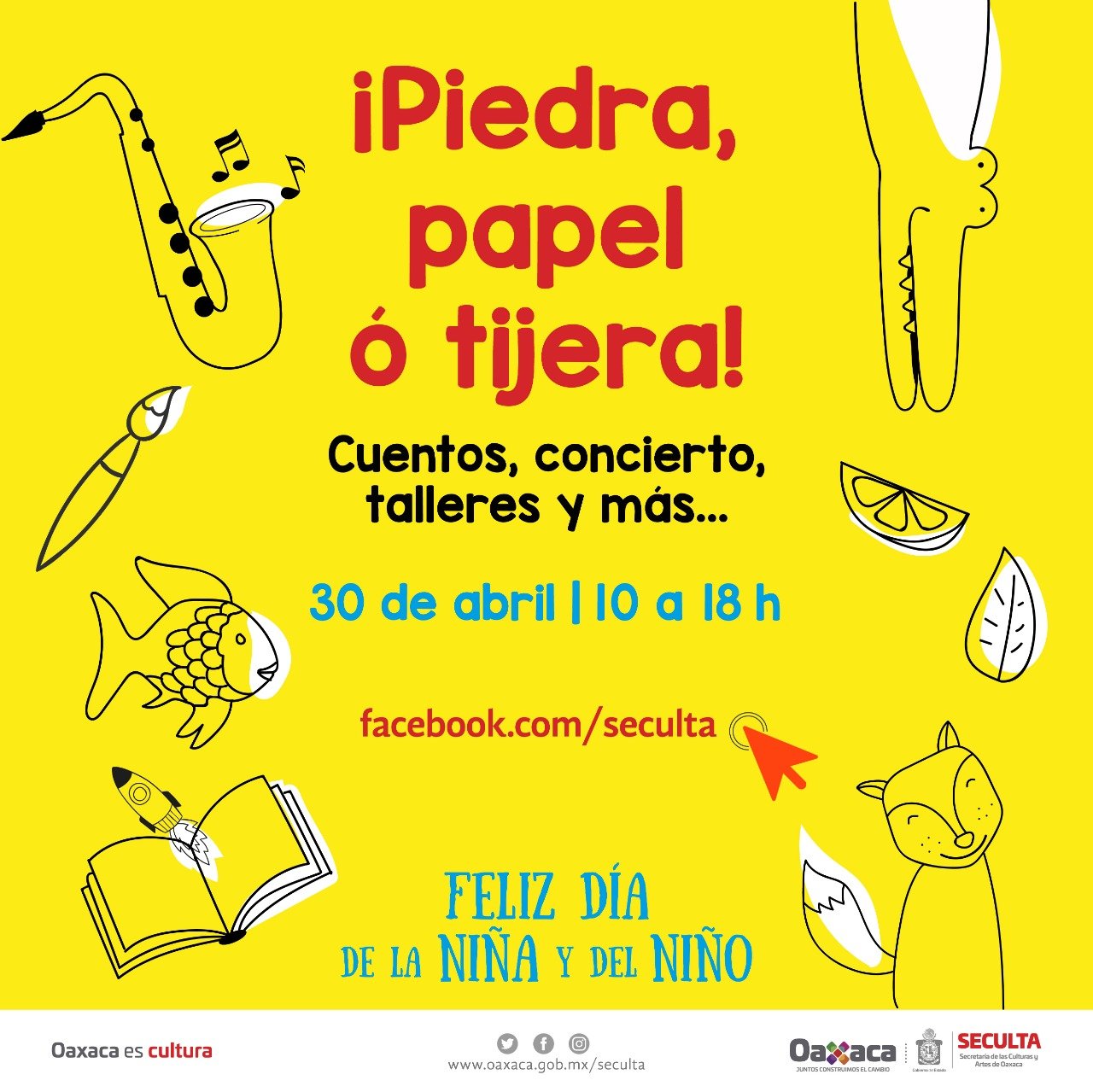 Para celebrar a las y los más pequeños que se encuentran en casa como medida preventiva por el Covid-19, la Secretaría de las Culturas y Artes de Oaxaca (Seculta) llevará a cabo el programa “Piedra, papel o tijera”, que consta de diversas actividades culturales que podrán disfrutar a través de la plataforma de Facebook.