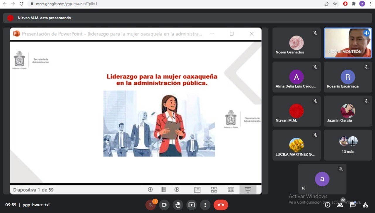 En el taller, impartido a través de plataformas digitales, participó personal de las secretarías de Administración, General de Gobierno, de Movilidad y de Bienestar, así como del Instituto Oaxaqueño del Emprendedor y de la Competitividad, el Instituto Estatal de Educación Pública de Oaxaca, la Coordinación General del Comité Estatal de Planeación para el Desarrollo de Oaxaca y de la Comisión Estatal del Agua.
