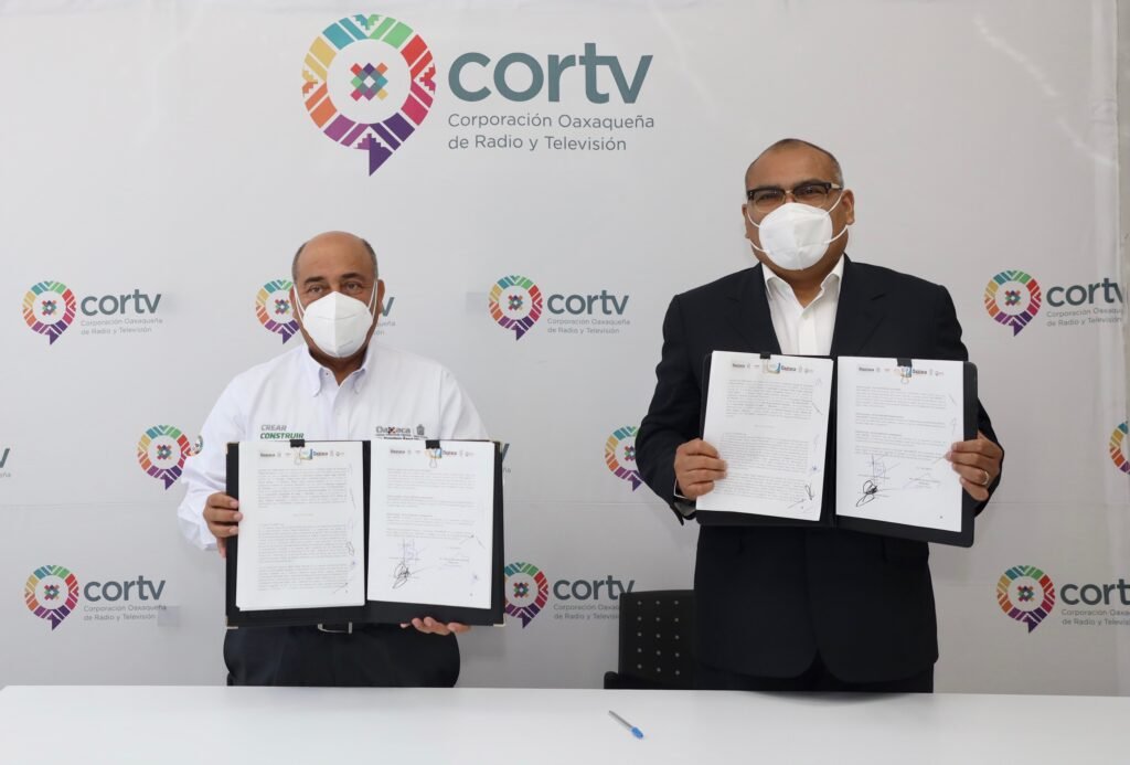 Al formalizar el convenio de colaboración, en reunión realizada con apego a las medidas sanitarias decretadas, los directores del IEEPO y de la CORTV refrendaron su respaldo a esta estrategia, que en las comunidades ha representado un importante apoyo para los estudiantes y sus familias, complementario al uso de los libros de texto gratuitos.