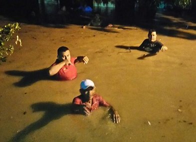 En una de las calles, el nivel del agua subió a más de dos metros de altura y quedaron más de 10 familias atrapadas; sus vecinos hicieron la labor de rescatarlos, ayudando a salir de sus viviendas.