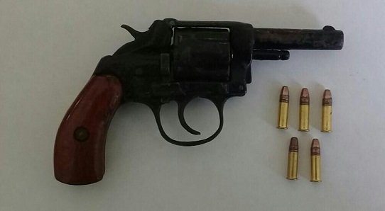 Lo antes mencionado, en cumplimiento a la Ley Federal de Uso de Armas de Fuego y Explosivos; ya que al realizar la inspección de seguridad correspondiente, no exhibió los permisos correspondientes para la portación de un arma de fuego corta, calibre 22, matrícula y modelo Ilegible, tipo Revolver, con cinco cartuchos útiles.