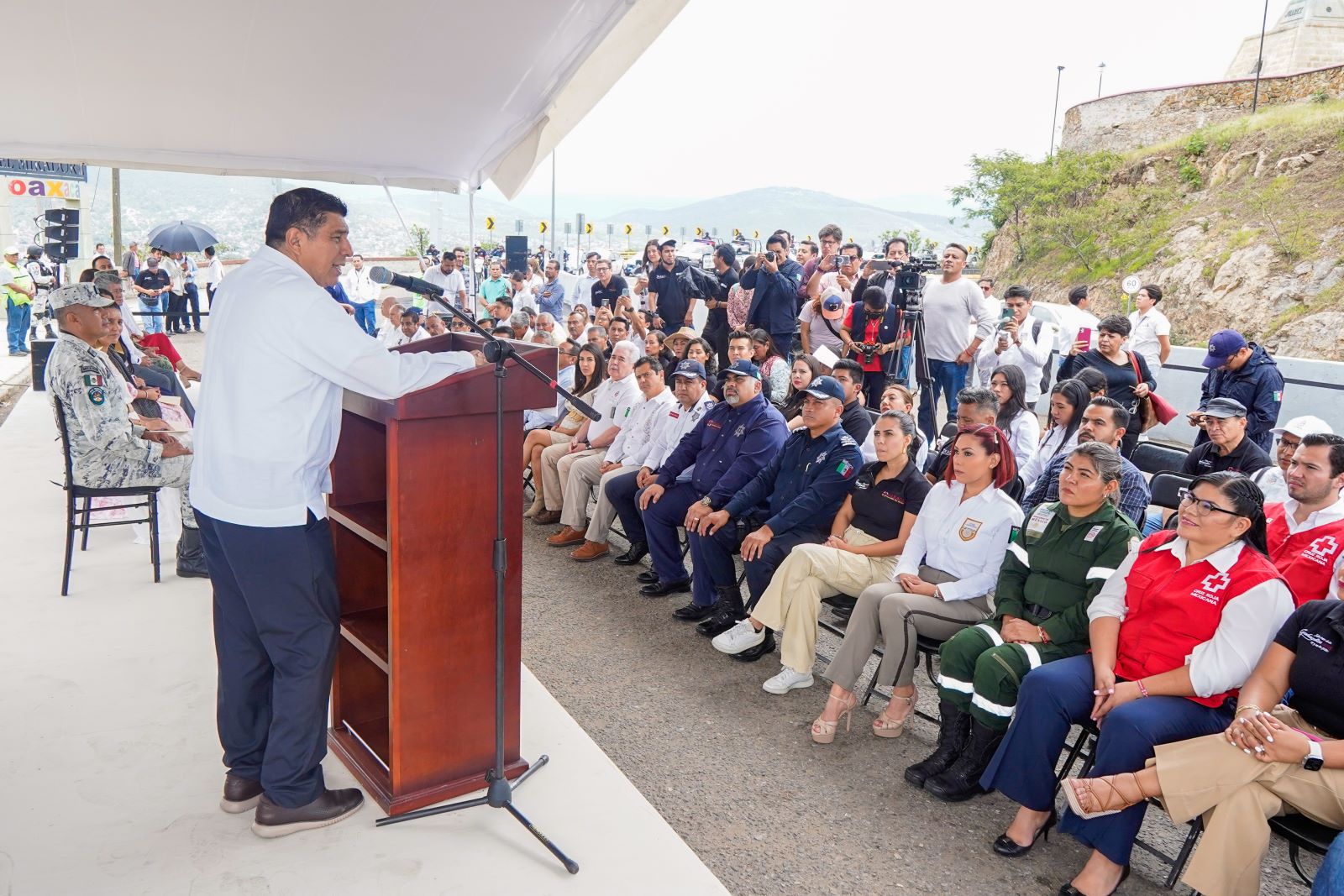 En el emblemático Mirador del Cerro del Fortín, el Mandatario Estatal indicó que ante la llegada de 129 mil 205 turistas en el marco de la máxima fiesta de las y los oaxaqueños, la actual administración ha emprendido dichas acciones para fortalecer las estrategias de seguridad para la sociedad oaxaqueña y quienes visiten la entidad en los próximos días.