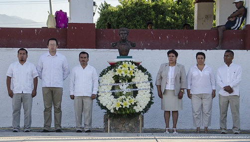 Acompañado del Contralmirante Cuerpo General Diplomado del Estado Mayor, Cornelio Espinoza Hernández, Comandante del Sector Naval Huatulco, de la Presidenta Honoraria del Sistema DIF Huatulco, María de la Luz Díaz Ruiz, y con la dirección de la Escuela Primaria “Mi Patria es Primero”, el primer concejal calificó al héroe guerrerense como uno de los hombres de mayor valentía y honradez.
