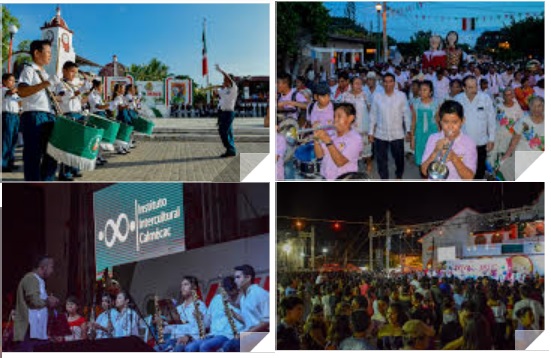 Previo a la pronunciación de la arenga, los asistentes disfrutaron de la interpretación de diversas piezas musicales bajo la voz de los grandes talentos locales, quienes abrieron el escenario para dar paso al concierto del Instituto Intercultural Calmécac, que estreno la composición Ojos Huatulqueños.