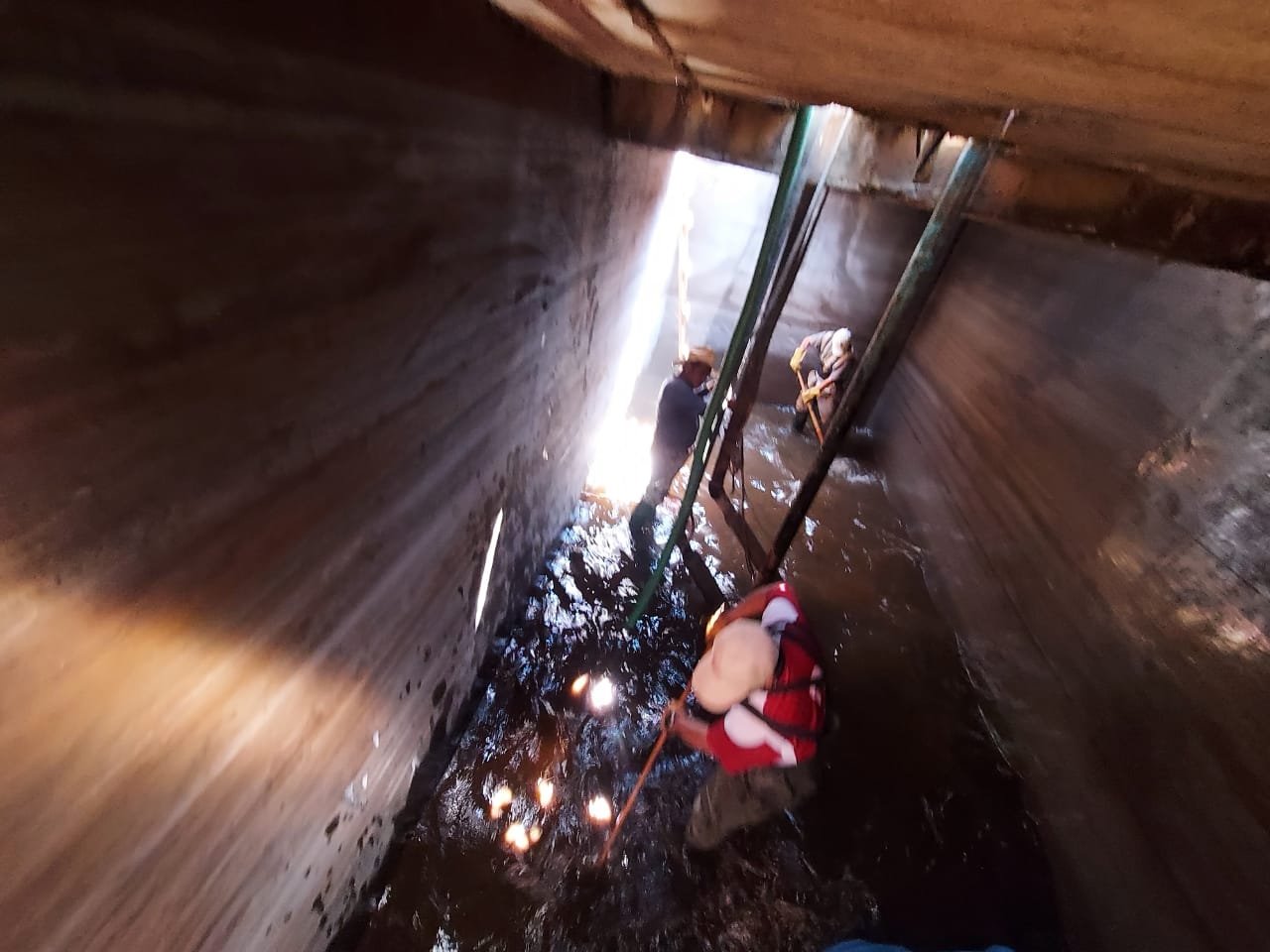 Los trabajos de limpieza y saneamiento ejecutados por el personal de base del Departamento de Control de Calidad, consisten en realizar el retiro de lodos, sedimentos y partículas de fierro manganeso, que se generan de manera natural dentro del vaso del tanque de distribución.