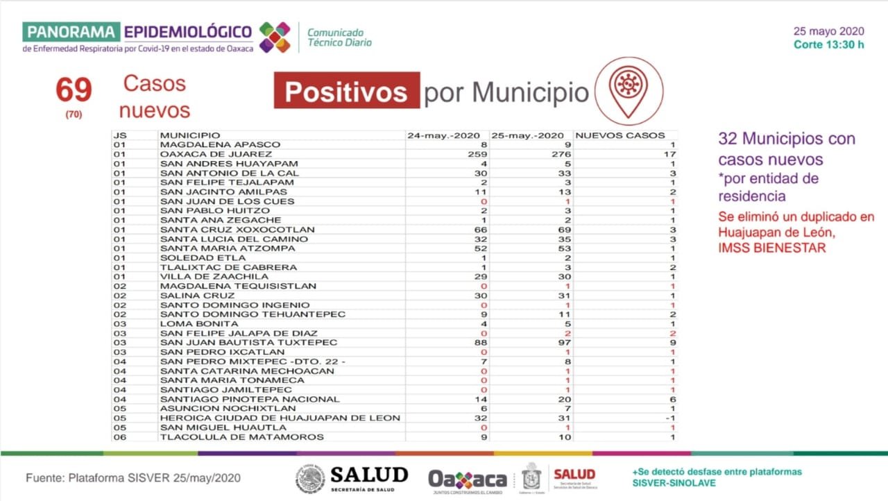 El titular de los Servicios de Salud de Oaxaca (SSO) subrayó que los 69 nuevos pacientes registrados con esta enfermedad en las últimas 24 horas corresponden a 32 municipios, por lo que a la fecha el virus se ha propagado en un total de 134 localidades de la entidad.